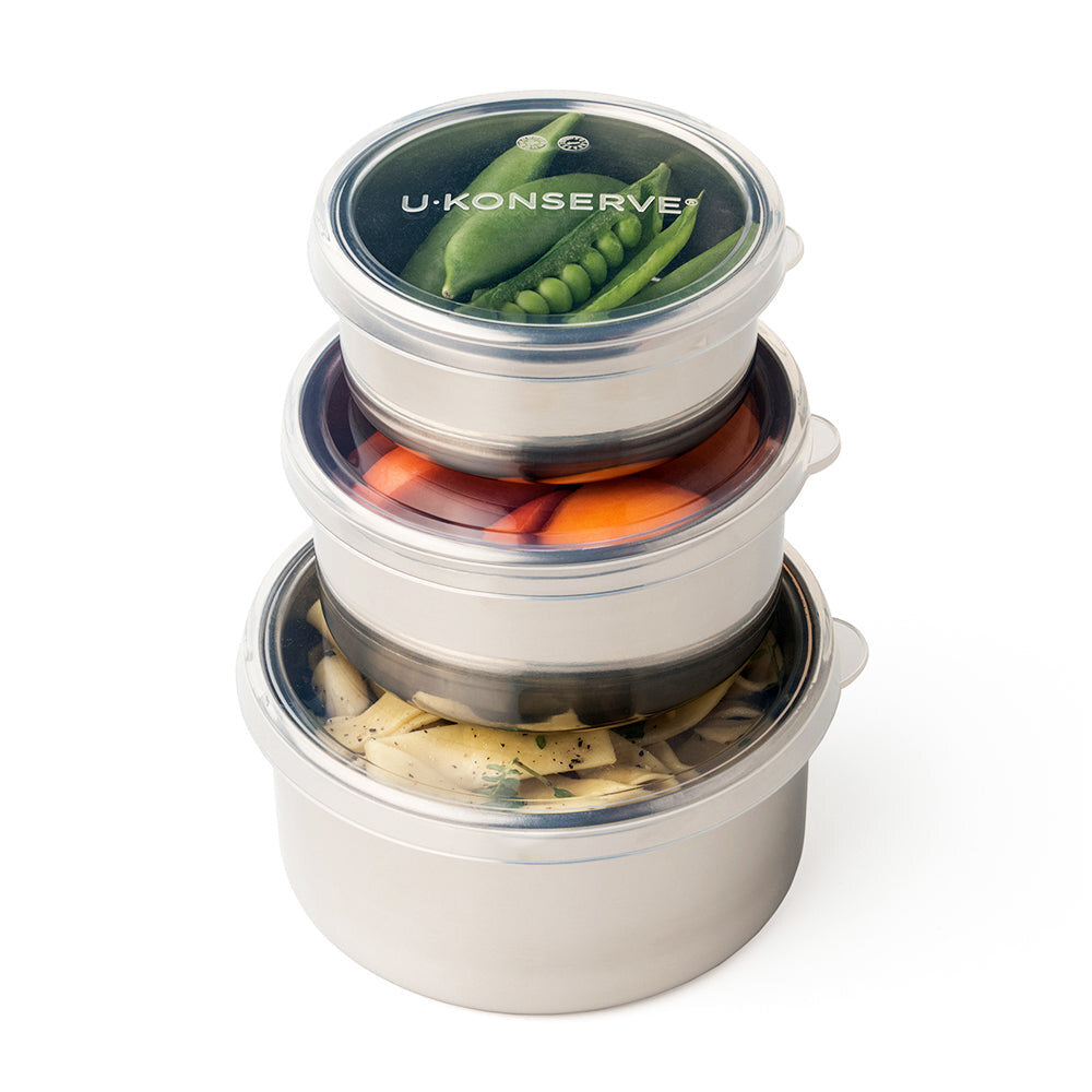 Los recipientes apilables de acero inoxidable con tapas de silicona transparentes y sin plástico son soluciones perfectas y sin desperdicios para almuerzos, picnics y viajes. El juego incluye recipientes de 16 oz/473ml, 9 oz/266ml y 5 oz/148ml, ideales para bocadillos de diferentes tamaños. Ayudan a reducir los envases de un solo uso y son versátiles para almacenar alimentos en el hogar y en movimiento. También son ideales para organizar la cocina, la despensa, la preparación de comidas y las sobras. Las tapas flexibles son fáciles de abrir y a prueba de fugas. Hechos con materiales no tóxicos, estos recipientes son una excelente opción cero desperdicio para usted y el planeta.